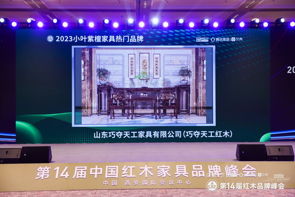 巧奪天工紅木榮獲“2023小葉紫檀家具熱門品牌”