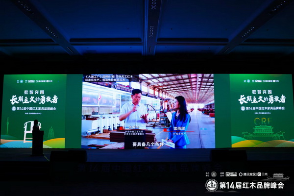 紅木品牌峰會現(xiàn)場播放巧奪天工大國工廠紀錄片精彩片段