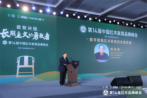 國務院參事室特邀研究員、國家人社部原常務副部長、中國勞動學會會長楊志明以《加快數(shù)字賦能紅木家具的創(chuàng)新》為題,表明中國式現(xiàn)代化深深植根于中國優(yōu)秀傳統(tǒng)文化,高質量發(fā)展是中國式現(xiàn)代化的“底色”,推動中國家具文化與工藝美術創(chuàng)造性轉化和創(chuàng)新性發(fā)展,需要數(shù)智賦能的傳承與創(chuàng)新,探討數(shù)智賦能紅木家具高質量發(fā)展,使家具品牌影響力在數(shù)字化轉型中“數(shù)”起“云”涌。