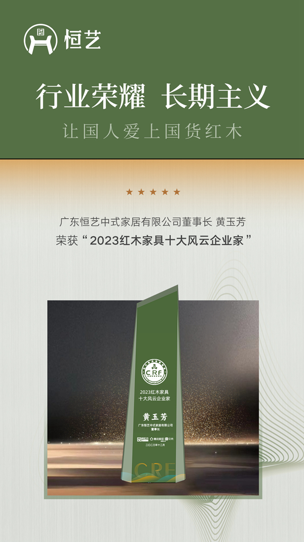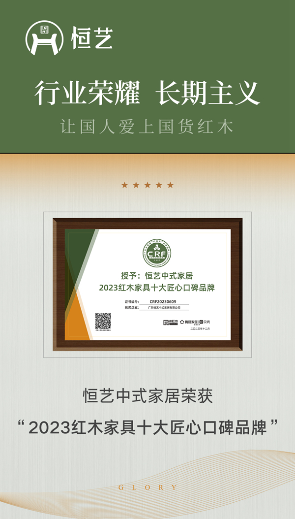 恒藝中式家居榮獲“紅木家具十大匠心口碑品牌”