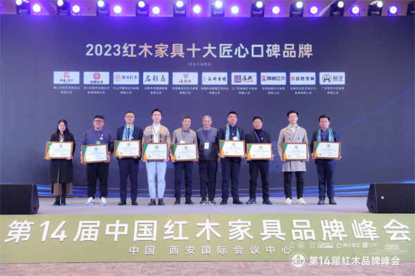 居典紅木(右四)蟬聯(lián)“紅木家具十大匠心口碑品牌”