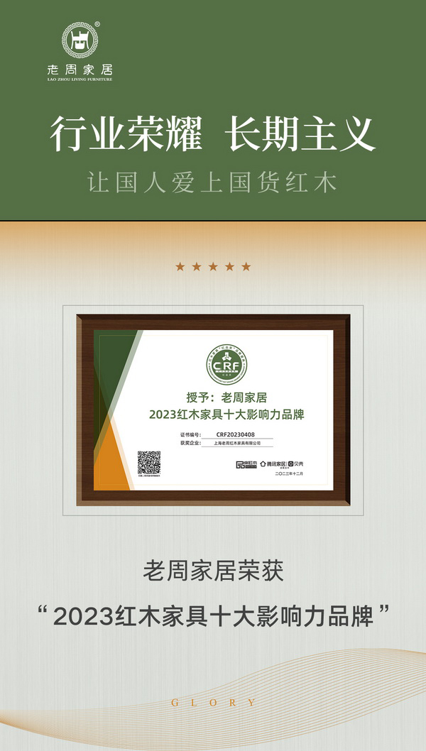 老周家居,這一連續(xù)14年蟬聯(lián)此殊榮的品牌,無疑是紅木家具行業(yè)的璀璨明星。紅木品牌峰會與老周家居一同走過了14個春秋,每一步的成長都留下了老周家居堅實的足跡,也記錄下了他們收獲的每一份榮耀。