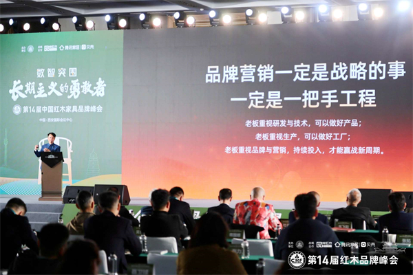 今天很開心與大家相聚在西安,共同見證第十四屆中國紅木品牌峰會的召開,今年峰會的主題是“數(shù)字突圍,長期主義的勇敢者”,為了這個主題,我也是思考良多。現(xiàn)在也正值年終,借此機會總結(jié)一下2023年我們紅木行業(yè)的發(fā)展成果。今天齊聚一堂,與三位部長以及四位會長和一眾專家、企業(yè)精英一起交流、探索我們紅木行業(yè)新一年的突圍之路。