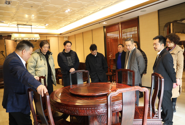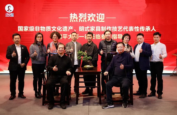 12月23日,國(guó)家級(jí)非物質(zhì)文化遺產(chǎn)、明式家具制作技藝代表性傳承人許建平一行蒞臨東莞市鴻普軒家具有限公司(以下簡(jiǎn)稱國(guó)壽紅木)參觀交流,并與中國(guó)傳統(tǒng)工藝大師、廣式家具制作技藝代表性傳承人、國(guó)壽紅木創(chuàng)始人陳國(guó)壽進(jìn)行會(huì)面,探討非遺制作技藝傳承。