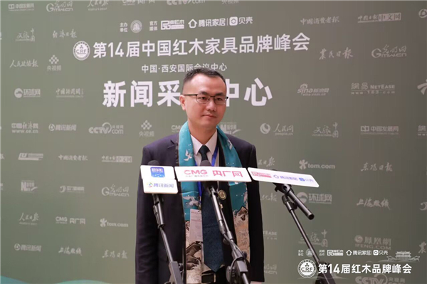 雅宋紅木總經(jīng)理竇琦柳接受峰會(huì)現(xiàn)場(chǎng)主流媒體采訪