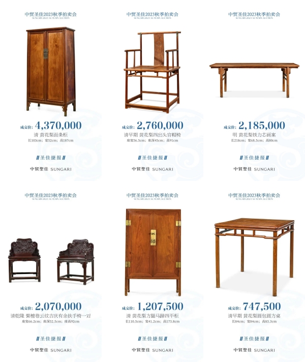 [摘要]中貿(mào)圣佳2023秋拍中紅木家具拍賣總額達1334萬元