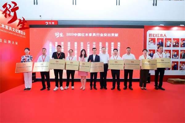8月,李忠信紅木受邀參與“衍生-2023中國紅木家具文化博覽會”,并攜帶新品亮相展會,向消費者宣傳推廣中式文化,榮膺了“2023中國紅木家具行業(yè)突出貢獻(xiàn)”獎項。