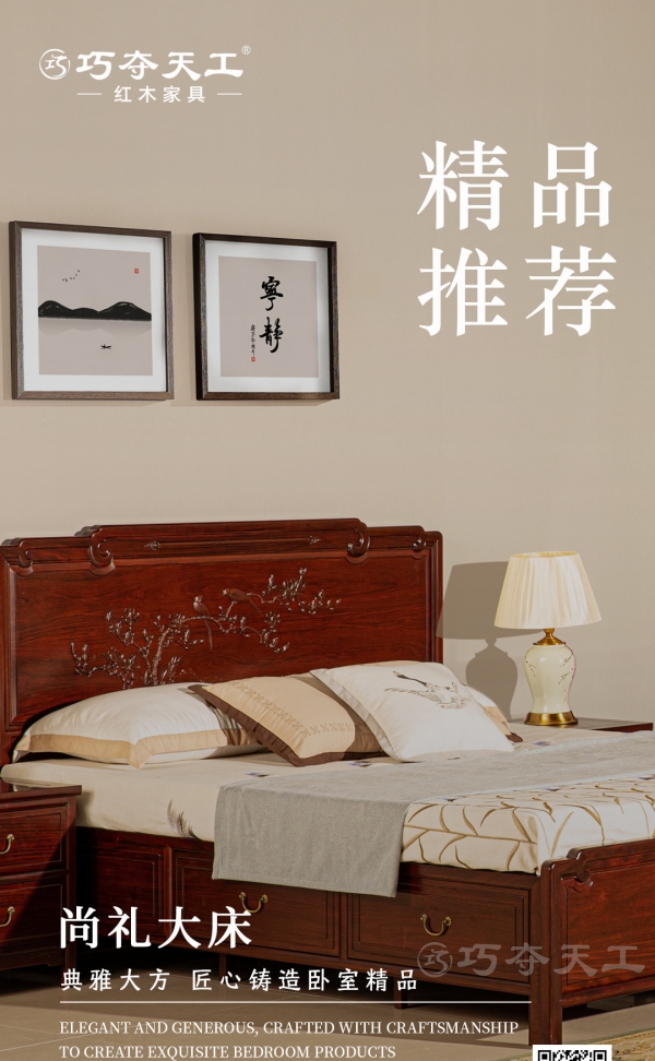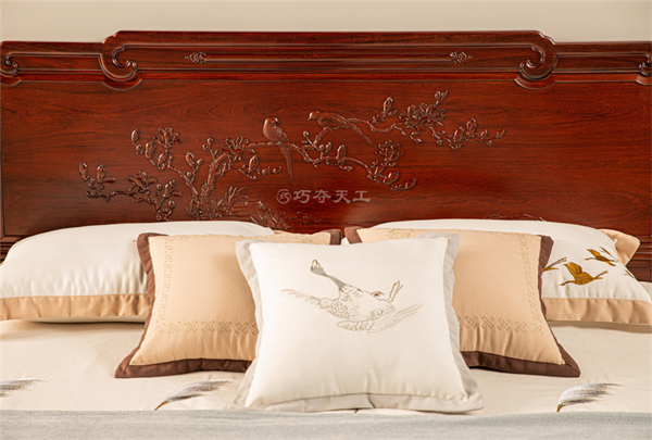 精致的雕刻讓床頭的錦雞和玉蘭花栩栩如生,加之科學(xué)實(shí)用的床體打造,每一個(gè)細(xì)節(jié)深處,都滲透著巧奪天工匠師們克己復(fù)禮的工匠精神。