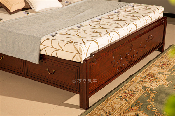 這些雕刻圖案不僅豐富了視覺效果,也提升了整個(gè)床的文化內(nèi)涵和藝術(shù)價(jià)值。