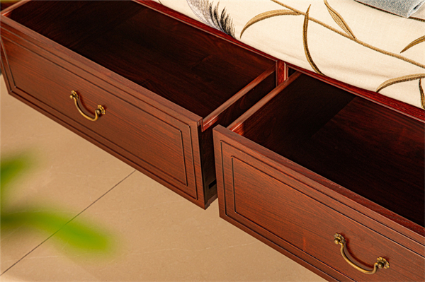 整體采用榫卯連接的方式,床體下面設(shè)置多個(gè)支撐點(diǎn),保證了床面的整體受力,讓大床更加結(jié)合穩(wěn)定,睡覺時(shí)不會(huì)發(fā)出異響,營(yíng)造出寧?kù)o溫馨的居室氛圍。
