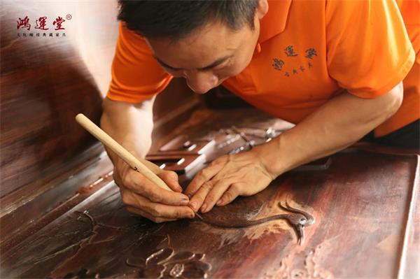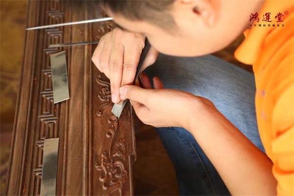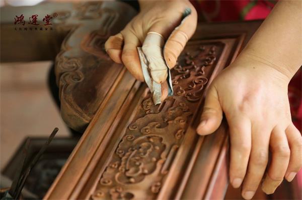 雕刻,堪稱紅木家具的點(diǎn)睛之筆。鴻運(yùn)堂的雕刻師們以刀為筆,以木為紙,將心中的靈感和情感融入一刀一刻之中。