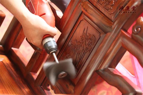 打磨與拋光,是鴻運(yùn)堂生產(chǎn)工序中一道重要的環(huán)節(jié),也是鴻運(yùn)堂紅木家具不同于其他家具獨(dú)具匠心的關(guān)鍵所在。成立30多年來(lái),鴻運(yùn)堂堅(jiān)持不上漆、不打蠟,做“原汁原味、健康環(huán)?!钡募t木家具。因此,要保證家具表面色澤光亮、紋理清晰、光滑如鏡,鴻運(yùn)堂就要采用高精度的打磨拋光技藝。
