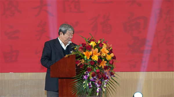 ▲中國工藝美術(shù)協(xié)會(huì)常務(wù)副會(huì)長張紅宣讀賀信
