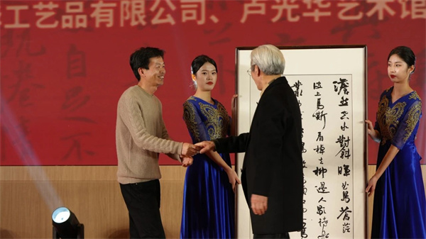 高山流水遇知音,在盧光華大師的藝術(shù)之路上,有無數(shù)知交同行。晚宴現(xiàn)場,二十余位著名書畫家特地向盧光華藝術(shù)館贈(zèng)送了字畫墨寶,為盧光華大師的藝術(shù)之路再添光輝。