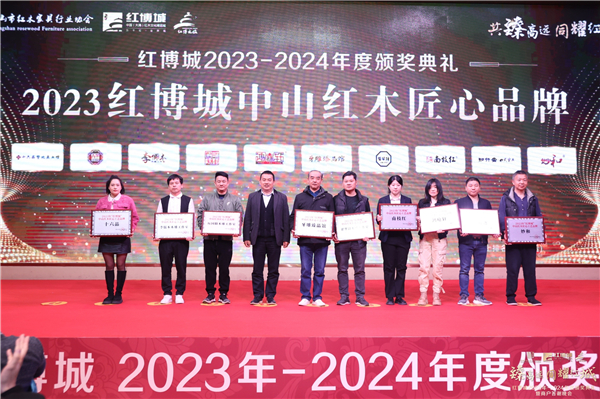 2023年“紅博城”中山紅木新中式十佳品牌代表上臺領(lǐng)獎