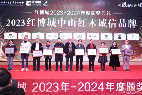 2023年“紅博城”中山紅木誠信品牌代表上臺領(lǐng)獎