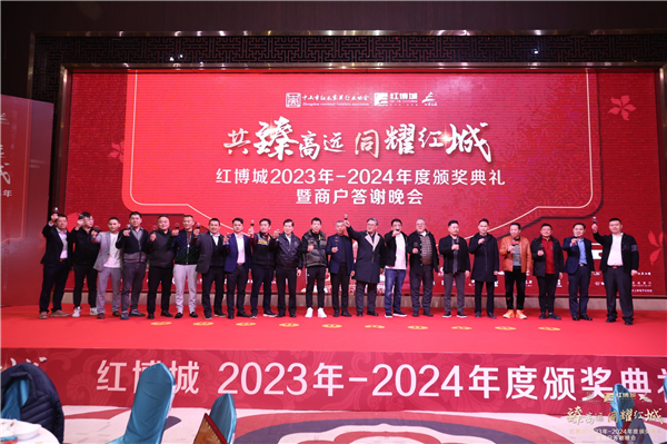 當(dāng)晚,紅博城2023—2024年度頒獎典禮在紅博城高峰論壇中心盛大啟幕,行業(yè)內(nèi)的領(lǐng)導(dǎo)、專家與一眾明星商戶代表等共同出席,共襄紅博城2023年度盛會,領(lǐng)創(chuàng)2024輝煌。