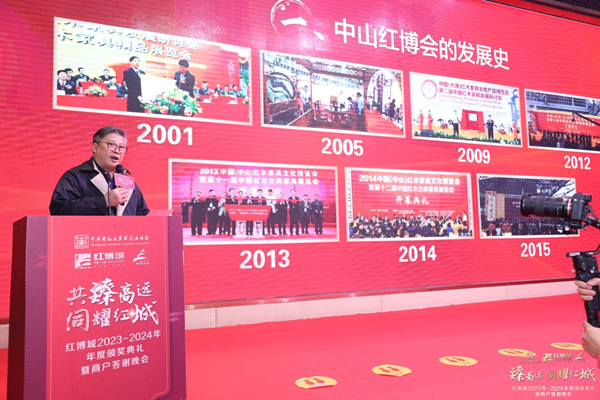 隨后,中山市紅木家具行業(yè)協(xié)會會長林志洪上臺進(jìn)行《中國(中山)紅木家具文化博覽會》(以下簡稱紅博會)主題分享。林志洪會長深切回顧了紅博會從2001年初具雛形到2023年行業(yè)同慶的砥礪之路,紅博會不僅是全國歷史最悠久、傳播最廣、經(jīng)銷商最多、最具內(nèi)涵的紅木行業(yè)盛會,也是華南第五最具規(guī)模、最具影響力的紅木家具行業(yè)盛會。2024年3月,紅博會也會以開年之勢隆重舉行,希望屆時能有更多企業(yè)參與到紅博會中來,共同推動紅木家具行業(yè)的繁榮和發(fā)展。