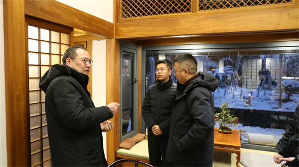 在明堂家居總經(jīng)理張向榮的帶領下,陸曉亮一行實地參觀了位于總部花園式廠區(qū)的中式生活美學館--明堂思想館。這里將明堂登“峰”歷史與紅木家具文化一路鋪陳,不僅可以觀摩明堂的代表性作品,更可以詳細了解明堂家居的發(fā)展歷程。陸曉亮一行不時駐足交流,感知紅木家具帶來的別樣魅力。