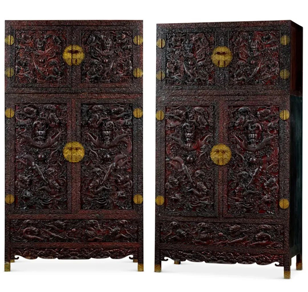 現(xiàn)代紫檀高浮雕龍紋大柜一對(duì)