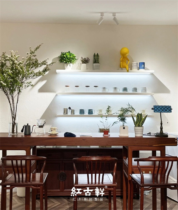 在茶室中放置紅木家具,可以營(yíng)造出一種古樸、雅致的氛圍,讓人們更好地品味茶的韻味,感受中華文化的魅力。選用優(yōu)質(zhì)紅木制成的家具,可以以大大增加茶室的觀賞性和氛圍。在擺放時(shí),只要合理布局,就能讓整個(gè)茶室看起來(lái)協(xié)調(diào)、舒適。