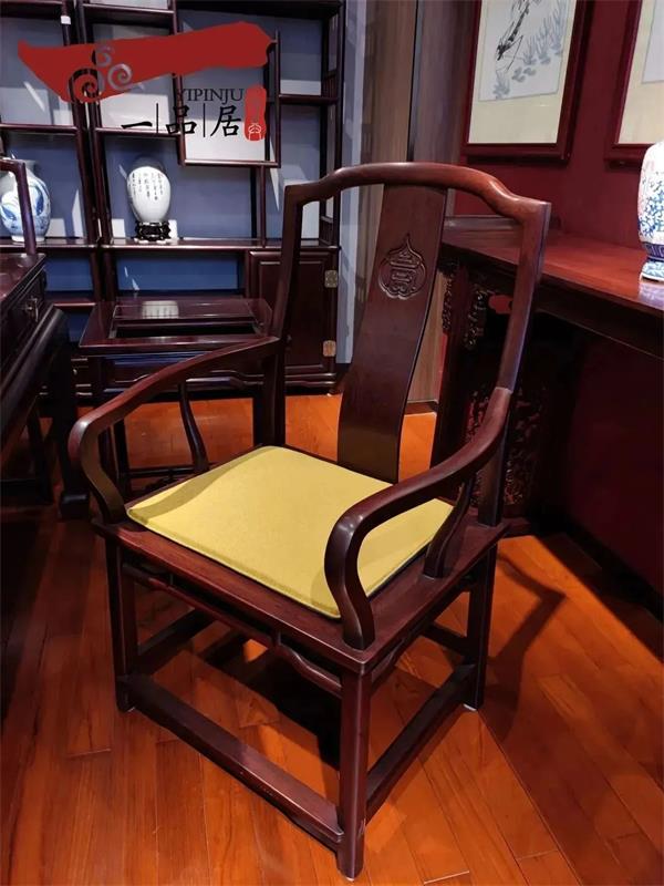 背板上雕刻的變體壽字紋,形若鼎爐,這是明式家具中常見的裝飾符號(hào),寓意著長(zhǎng)壽與吉祥。每當(dāng)我們坐在這樣的官帽椅上,都能感受到那份厚重的歷史與文化的積淀。