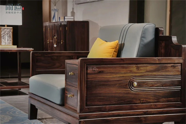 闊葉黃檀《閑居沙發(fā)》擯棄了多余的裝飾元素,用最簡單的線條勾勒出極致的空間美感。