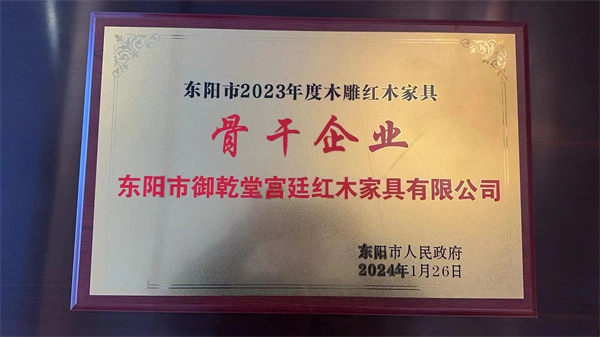 [摘要]御乾堂紅木被評(píng)為東陽(yáng)市2023年度木雕紅木家具龍頭骨干企業(yè)。