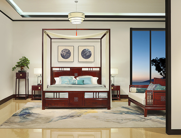 美聯(lián)紅木的新中式臥室家具,以深厚的傳統(tǒng)文化為底蘊(yùn),對古典韻味進(jìn)行現(xiàn)代演繹,將兩者巧妙融合、創(chuàng)新深化,恰如其分地展現(xiàn)出現(xiàn)代人對東方式精神境界的追求。
