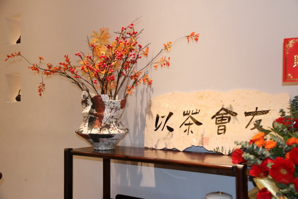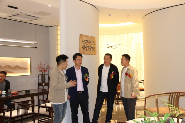名木居·茶悅中山店內(nèi),嘉賓和客商正在參觀洽談
