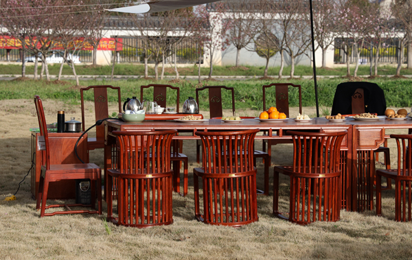隨著裊裊升起的茶香和爐火的氤氳熱氣,大家一邊欣賞著周圍的美麗風光,一邊深入感受著中國茶文化的獨特魅力和深厚底蘊。在輕松的閑談中,經(jīng)銷商家人們不僅感受到了國壽紅木家具所傳遞的情感溫度,更在享受這難得的悠閑時光中,對國壽紅木的“家文化”的含義有了更具象的了解。