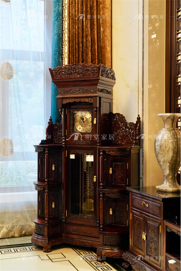 客廳的一角,靜靜地矗立著一座大紅酸枝落地鐘樓。它不僅僅是一個時間的見證者,更是家中一道獨特的風(fēng)景線,展現(xiàn)著中西文化的完美融合。