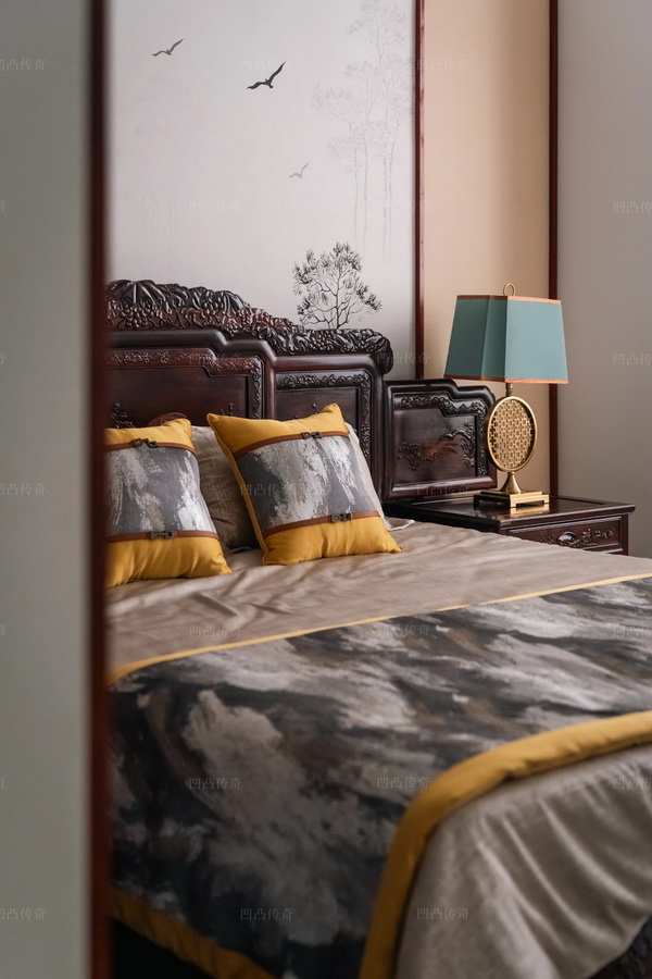紅木床,作為經(jīng)典的中式元素,配置在中式風格的臥室中,能夠營造出大氣雅致,而又不失寧靜溫馨的居室氛圍,在很大程度上提升人們的睡眠質量。