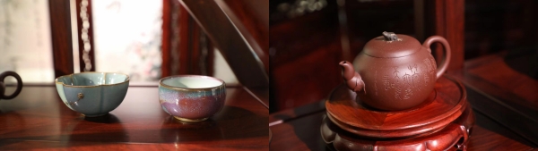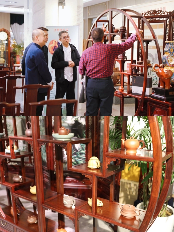 綠寶石藝術(shù)陶瓷館館長朱東明和巧奪天工紅木銷售總監(jiān)陳樹娟一起探討茶空間的打造