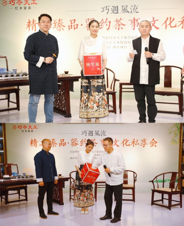 在幸運(yùn)抽獎環(huán)節(jié),現(xiàn)場氣氛達(dá)到了高潮。主辦方精心準(zhǔn)備了豐厚的獎品,包括精美的茶器、優(yōu)質(zhì)的茶葉以及巧奪天工紅木館的定制禮品等。