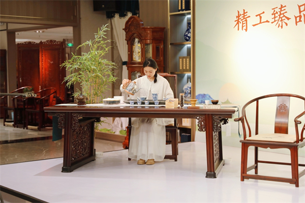 值得關(guān)注的是,巧奪天工紅木經(jīng)理魏俠還帶來了精彩的紅木精品茶臺鑒賞。