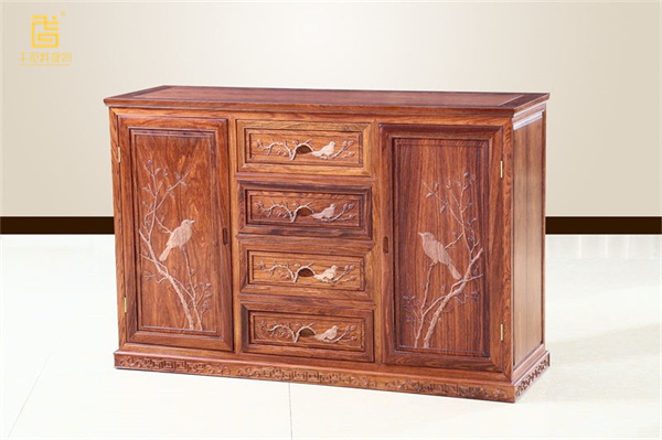 干龍軒《檀雕雙門餐邊柜》,雕刻細(xì)膩入微,栩栩如生,令人觀之賞心悅目。中間四個(gè)抽屜柜排列有序,不僅增加了儲(chǔ)物空間,更凸顯出設(shè)計(jì)的巧妙與實(shí)用性。柜門把手的內(nèi)凹式設(shè)計(jì)便于日常開(kāi)關(guān),省力便捷,同時(shí)有效延長(zhǎng)了柜門的使用壽命。