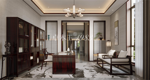 書房空間的宋式風(fēng)格羅漢床,風(fēng)格簡約,美而不凡。不僅可作片刻休閑,也可與好友伙伴品茶娛樂??臻g中超大落地窗設(shè)計(jì),若是遇上下雨天,便可與美景為伴,得到精神的徹底放空。