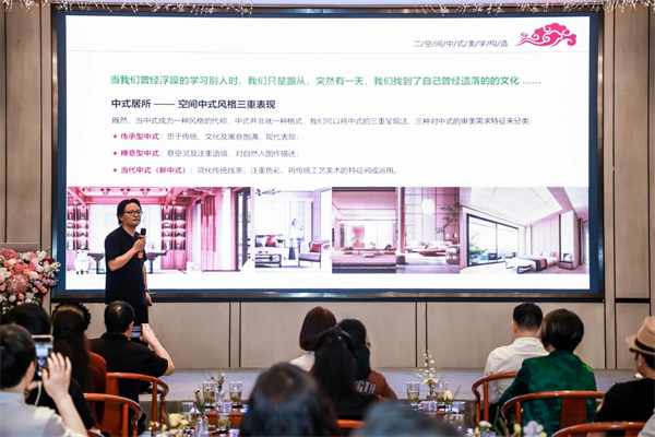 陳多吉老師循循善誘,帶領我們探尋“空間中式美學的構造”。從傳承性中式、禪意型中式、當代中式(新中式)三個維度,全面剖析了中式風格的表現(xiàn)特點。他以客廳、臥室、茶空間或書房等家居空間為例,深入淺出地講解了儒、釋、道文化如何在家居設計中得以體現(xiàn)。同時,他還從古建筑的美學構造到中國傳統(tǒng)色系,為聽眾呈現(xiàn)了一個豐富多彩的空間中式美學畫卷。