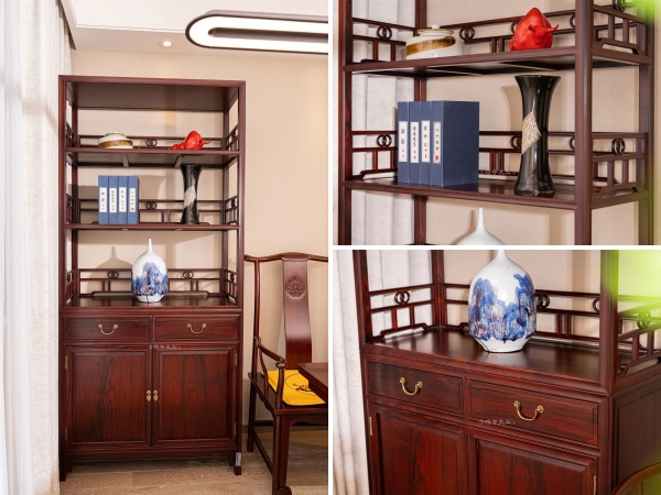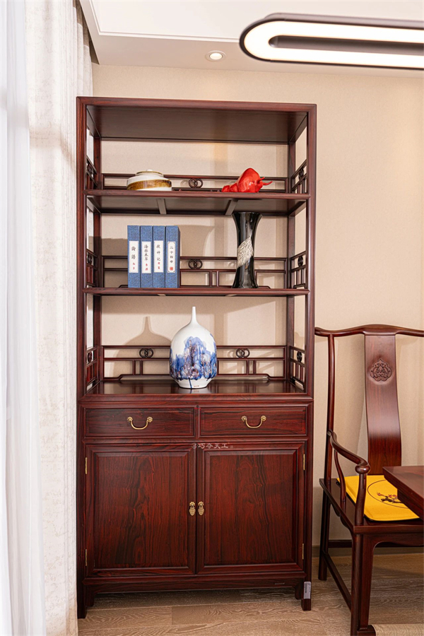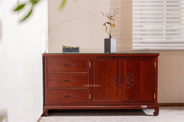 它采用優(yōu)質(zhì)紅木打造,外觀典雅大方,彰顯出高貴而不失低調(diào)的品味。儲(chǔ)物柜的柜門(mén)設(shè)計(jì)巧妙,柜門(mén)上的紋飾寓意著吉祥如意,為整個(gè)餐廳增添了一份美好的祝福。
