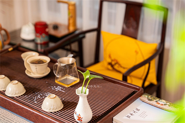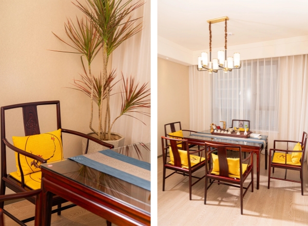 茶室靜置于家之一隅,明式家具簡(jiǎn)約而典雅,為品茗論道之佳境。