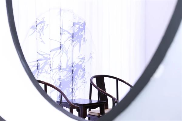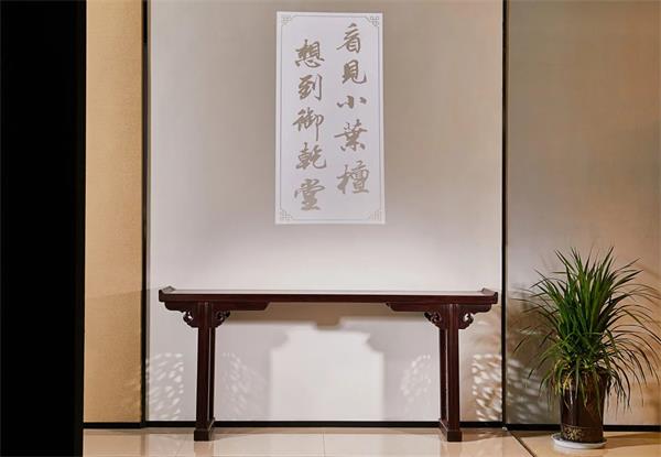 除了珍稀的紫檀家具外,館內(nèi)還裝飾著許多書畫墨寶,配以古雅溫潤的燈光和清新雅致的綠植,構(gòu)成了一幅和諧巧妙的中式生活畫卷。