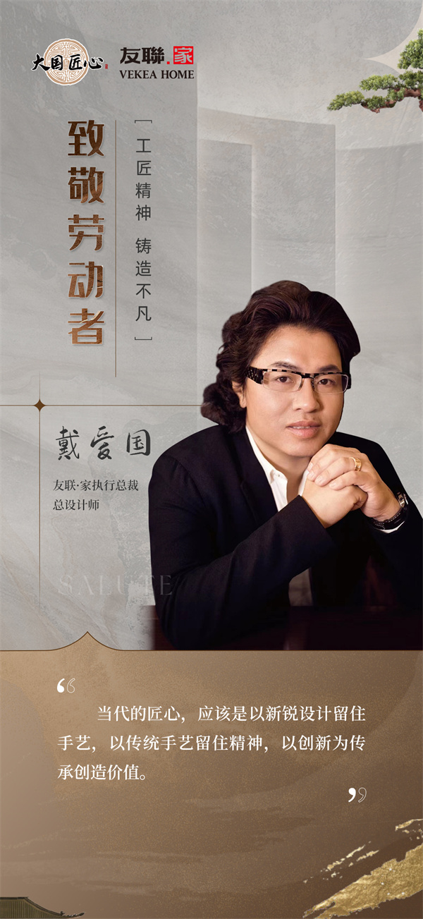 友聯(lián)·家執(zhí)行總裁、總設(shè)計師戴愛國匠心語錄:當(dāng)代的匠心,應(yīng)該是以新銳設(shè)計留住手藝,以傳統(tǒng)手藝留住精神,以創(chuàng)新為傳承創(chuàng)造價值。