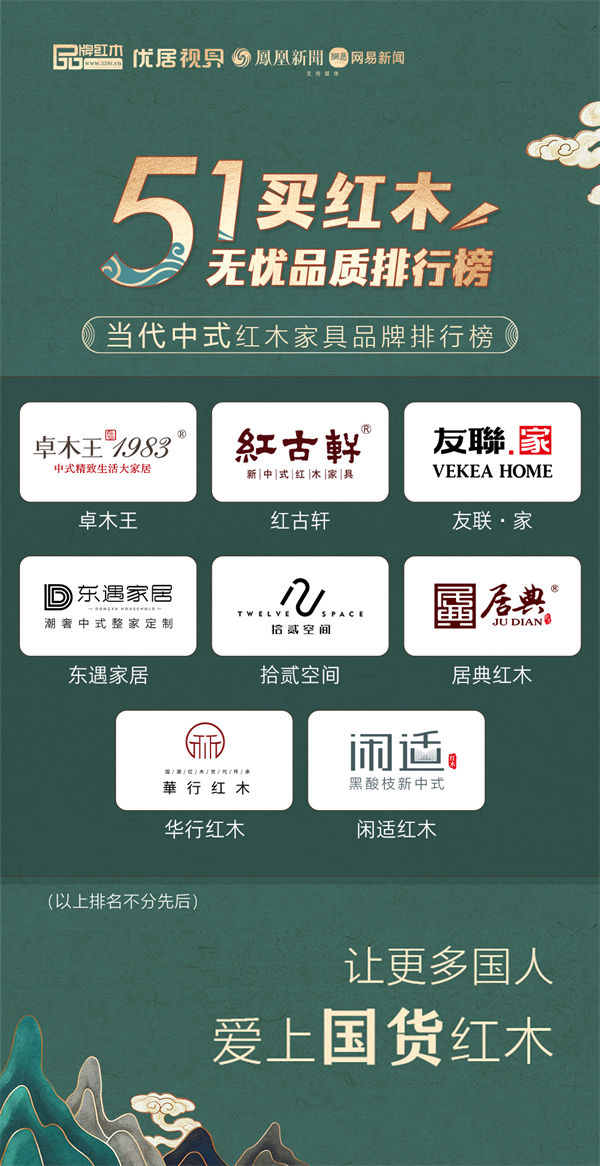 品牌紅木、優(yōu)居視界聯(lián)合推出“五一買(mǎi)紅木,無(wú)憂(yōu)排行榜”,分為“新古典紅木家具具品牌排行榜”“當(dāng)代中式紅木家具具品牌排行榜”“當(dāng)代藝術(shù)紅木家具具品牌排行榜”三大紅木家具風(fēng)格家具品牌,精選26家優(yōu)質(zhì)紅木家具品牌,讓你不再為選購(gòu)紅木家具而煩惱!
