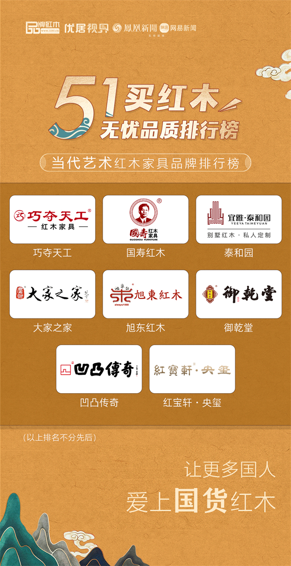 品牌紅木、優(yōu)居視界聯(lián)合推出“五一買紅木,無憂排行榜”,分為“新古典紅木家具具品牌排行榜”“當(dāng)代中式紅木家具具品牌排行榜”“當(dāng)代藝術(shù)紅木家具具品牌排行榜”三大紅木家具風(fēng)格家具品牌,精選26家優(yōu)質(zhì)紅木家具品牌,讓你不再為選購紅木家具而煩惱!