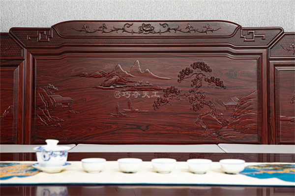 匠人們將錦繡山河、鳥語花香等自然美景融入家具之中,從《千里江山圖》的壯麗山河到《春枝棲禽圖》的靈動(dòng)生機(jī),都通過他們的巧手得以呈現(xiàn)。