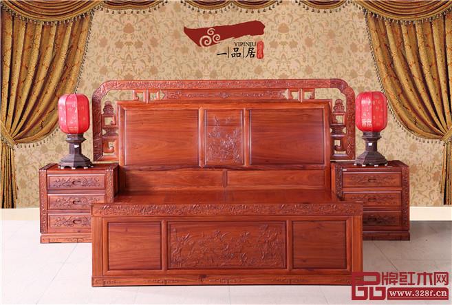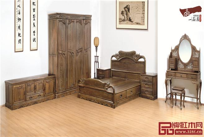 走進(jìn)一品居中式臥室,首先映入眼簾的便是那沉穩(wěn)而典雅的紅木家具。