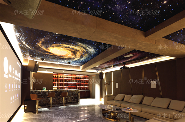 本案空間,全封閉式影音廳設(shè)計,帶給居者沉浸式放松體驗。星空頂?shù)脑O(shè)計構(gòu)思,營造出療愈身心的獨享空間。金屬點綴、絲絨觸感、真皮膚感,自由混搭的設(shè)計語言,為生活帶來多元體驗。