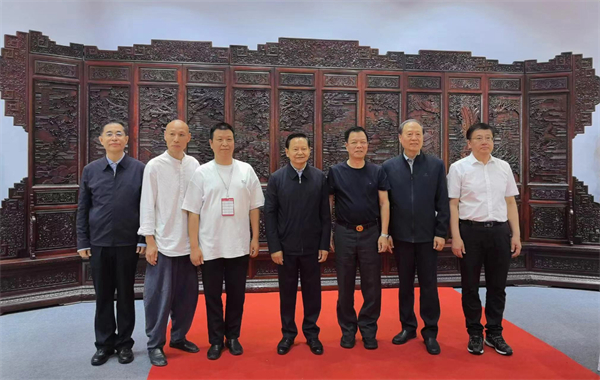 中國輕工業(yè)聯(lián)合會張崇和會長攜同中輕聯(lián)、中工美等領(lǐng)導(dǎo)在百鶴金鼎獎《盛世繁華》十二幅大地屏興合影留念
