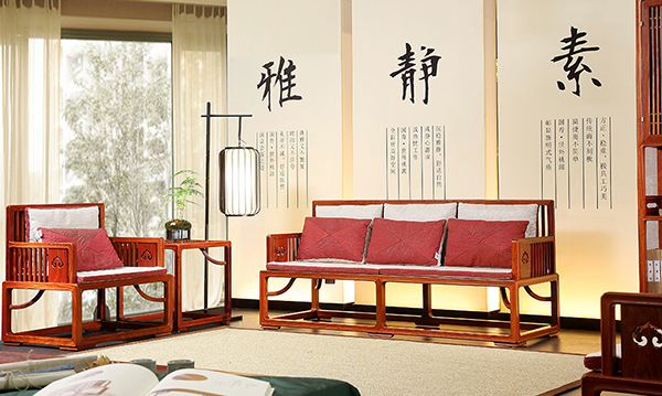 新明式紅木家具品牌——世外桃源《明軒客廳系列》,剔除一切繁瑣的元素,用簡潔的軟裝,素美的家具,賦予空間以寧靜的氛圍,讓人身心放松。以明軒沙發(fā)、角幾、長茶幾、書架構(gòu)成主體家具,新明式經(jīng)典元素的靈活運用,讓家具造型比例適度精確;空間分布得錯落有致,形成空間結(jié)構(gòu)的明確美觀,處處可感受到新明式風(fēng)格的精致和舒適。